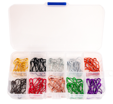 Agrafki kolorowe w zamykanym pudełku.