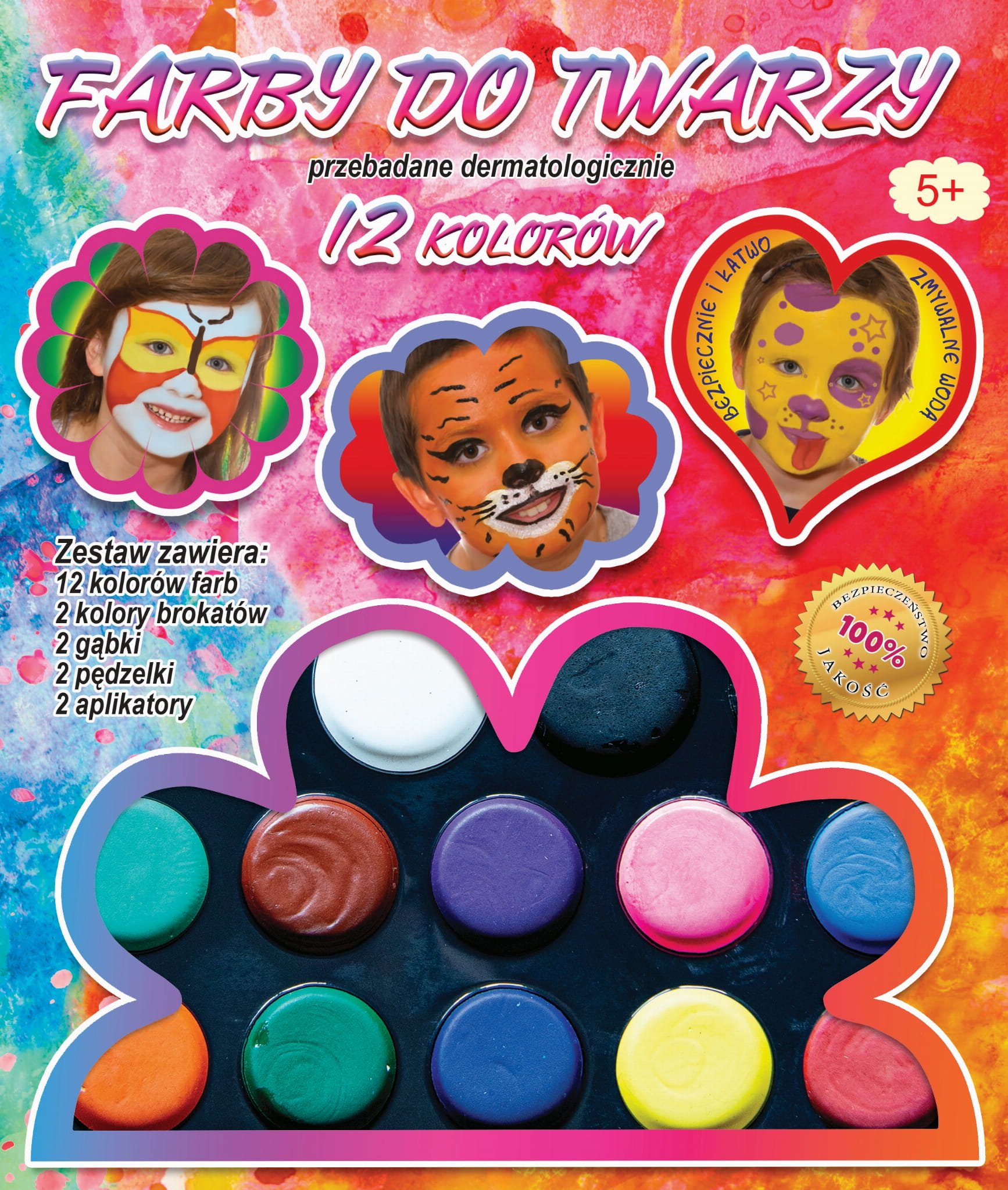 Farby do malowania twarzy 12 kolorów + akcesoria