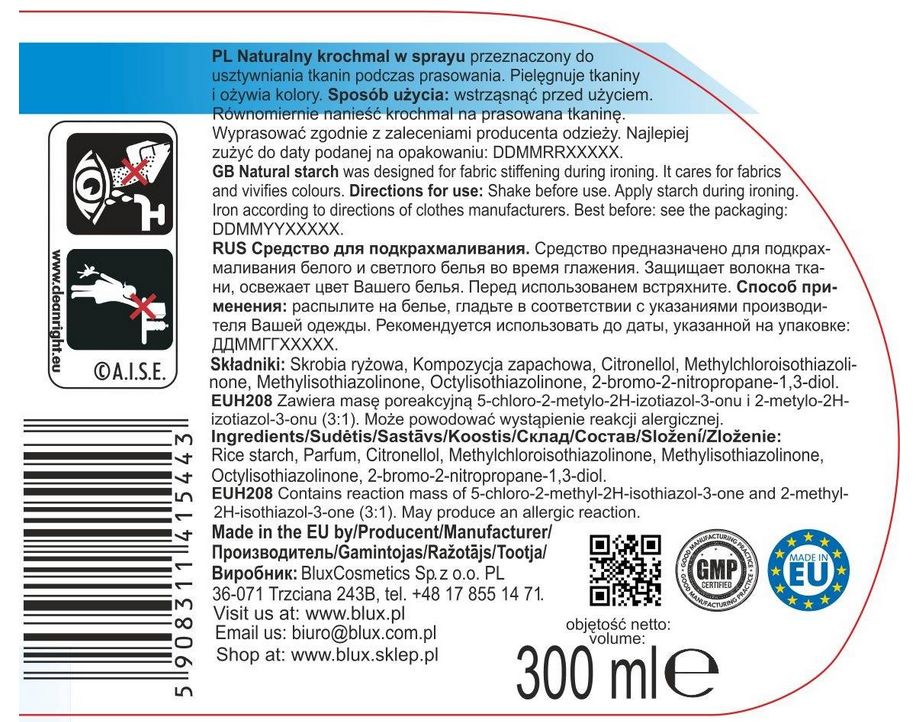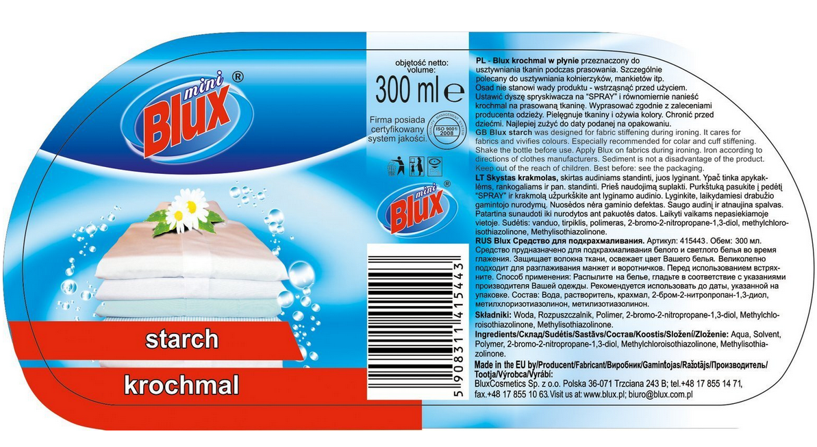 Uwaga: krochmal Blux posiada bogaty skład,