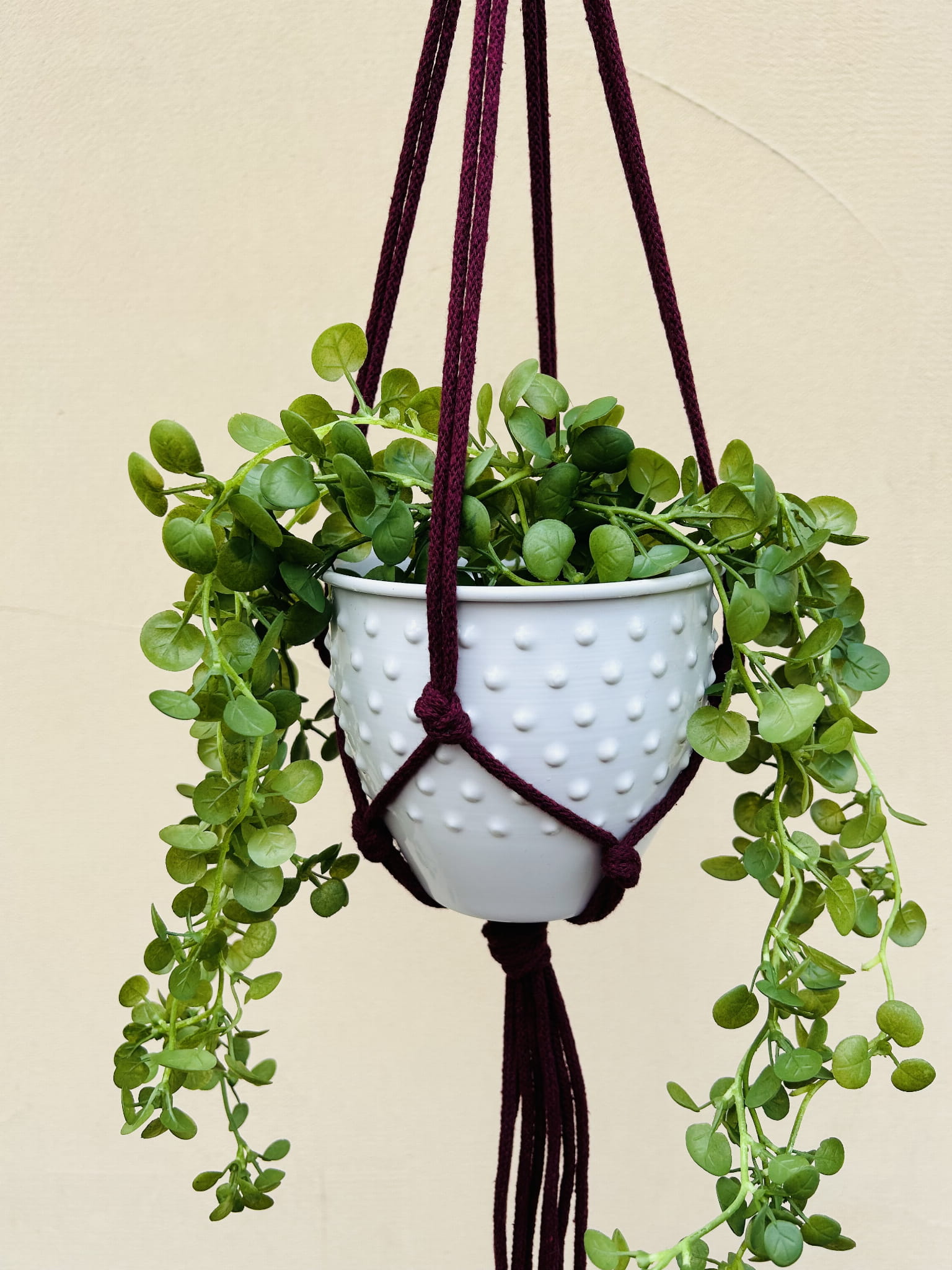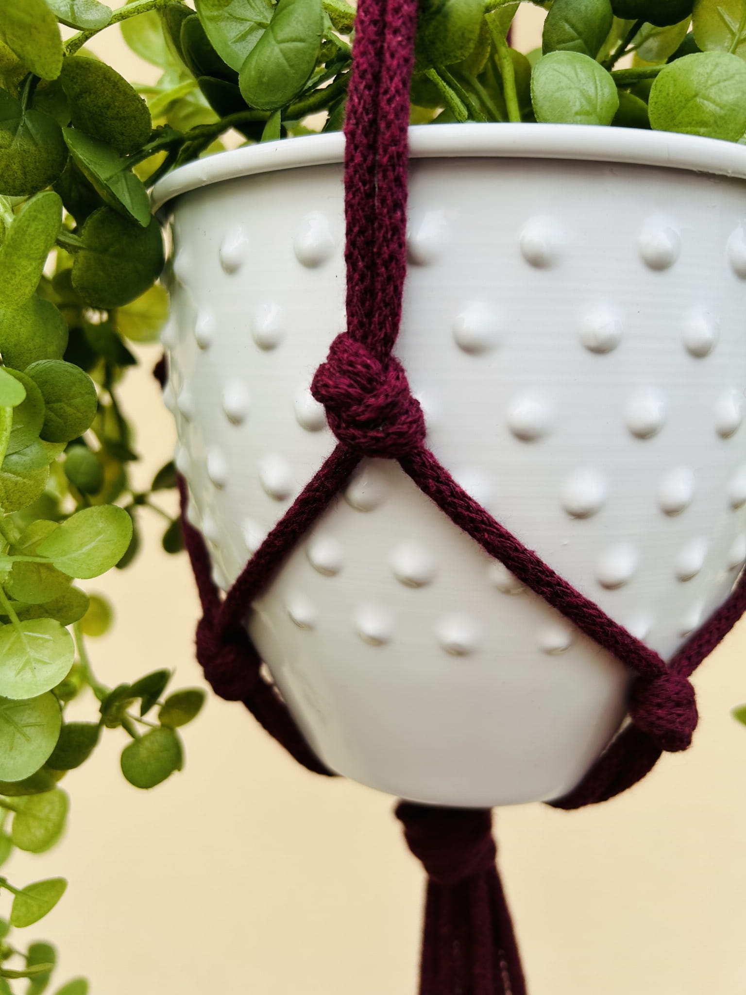 Kwietnik wiszący makrama ze sznurka boho BURGUND