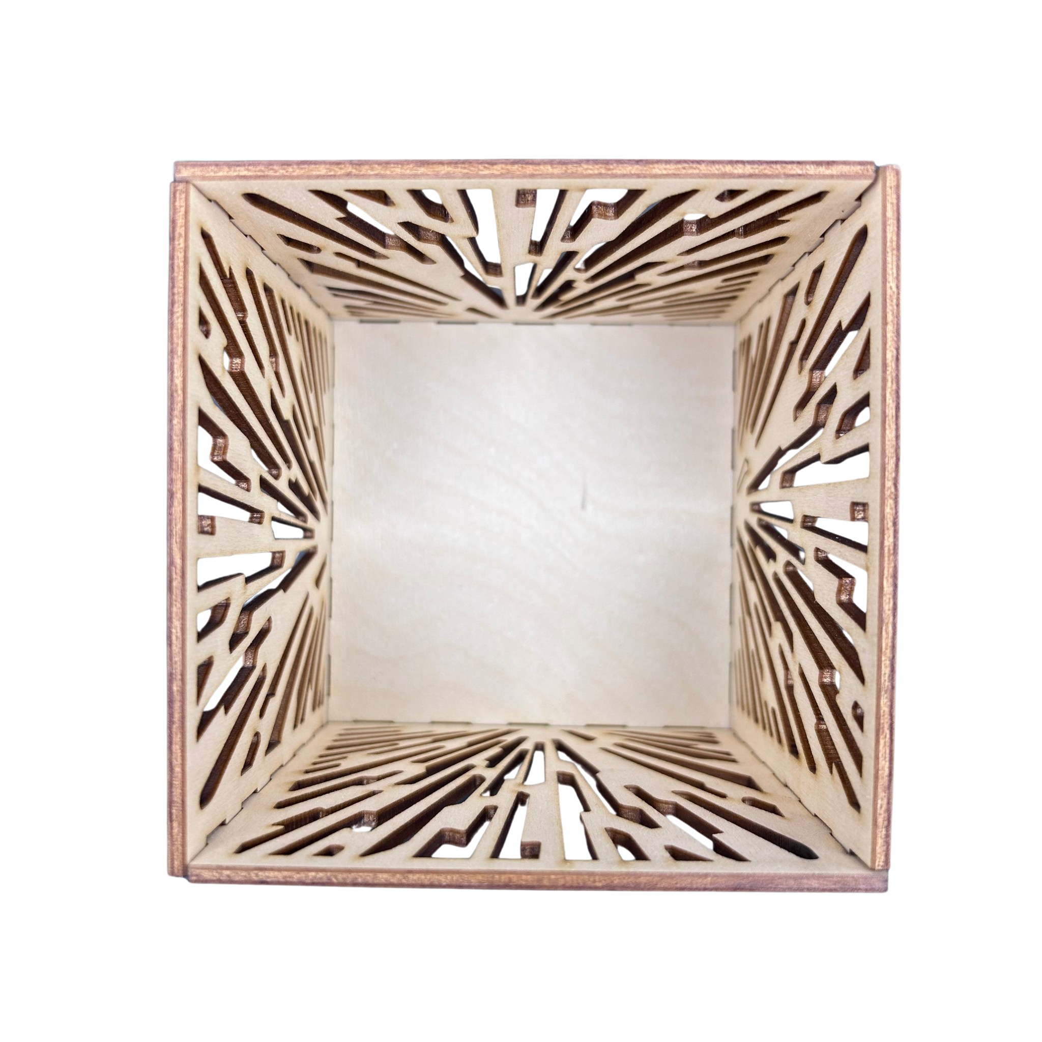 Lampion drewniany latarenka ze sklejki decoupage pudełko świecznik 11cm