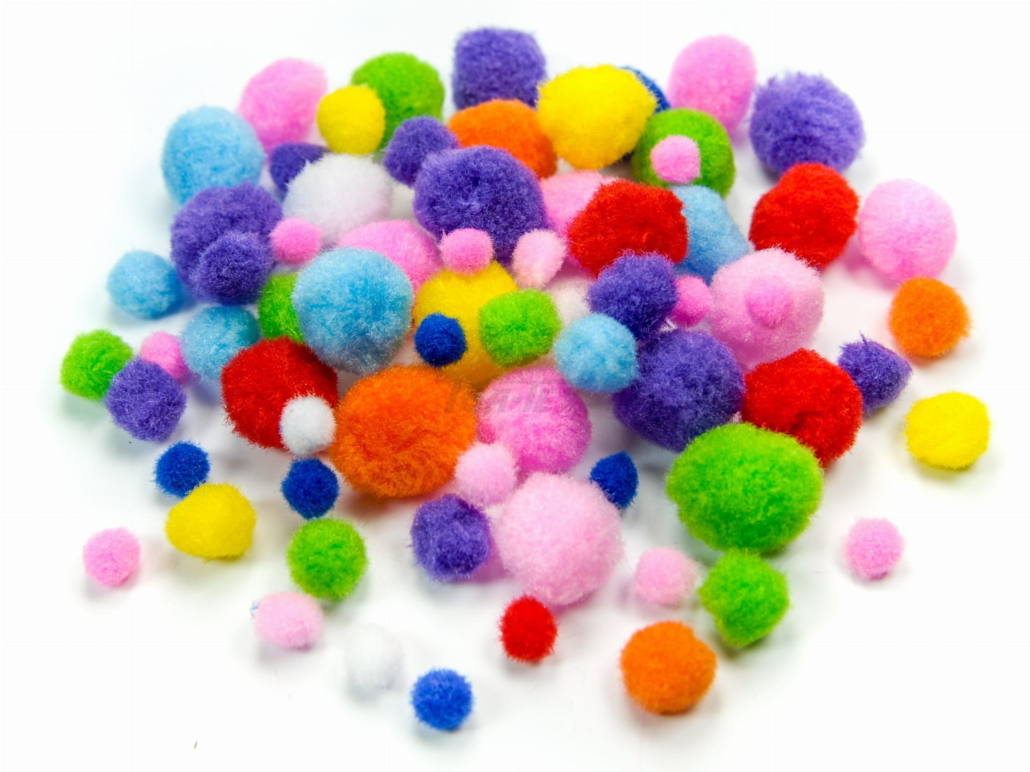 mix pomponów o średnicach 10 mm, 15 mm, 20 mm, 25 mm