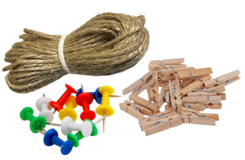 Sznurek jutowy pinezki klamerki dekoracyjne zestaw