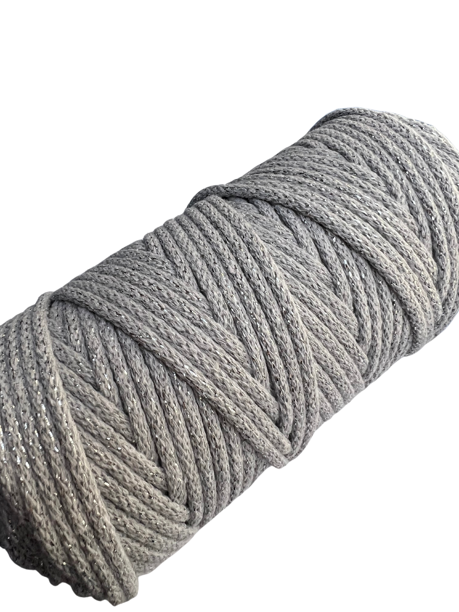 WAS Sznurek bawełniany z rdzeniem srebrna nitka szary 100m 5mm WAS