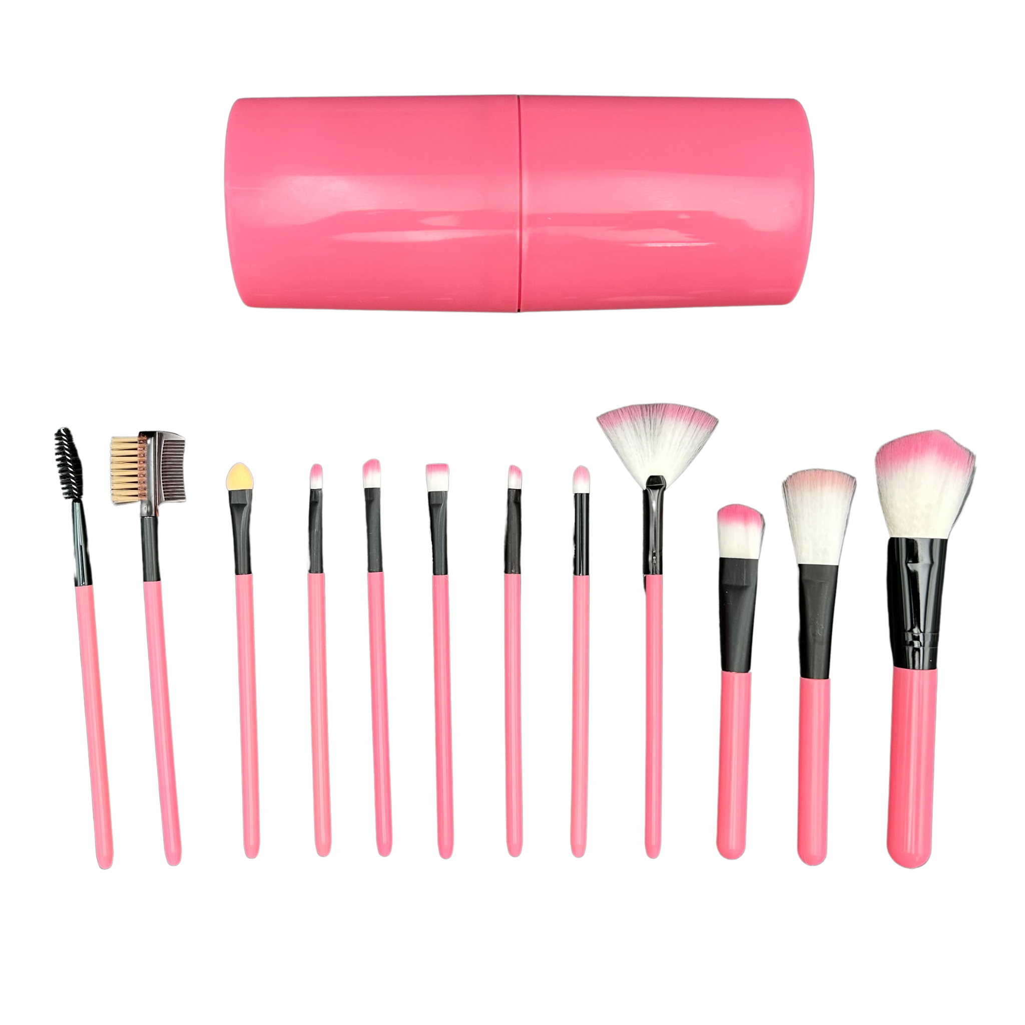 Zestaw 12sztuk pędzli zawiera pędzle do wykonania profesjonalnego makijażu twarzy i oczu. W zestawie znajdziesz pędzle do pudru, różu, bronzera, fluidu, rozświetlacza, do cieniowania oczu, blendowania, rysowania kresek .